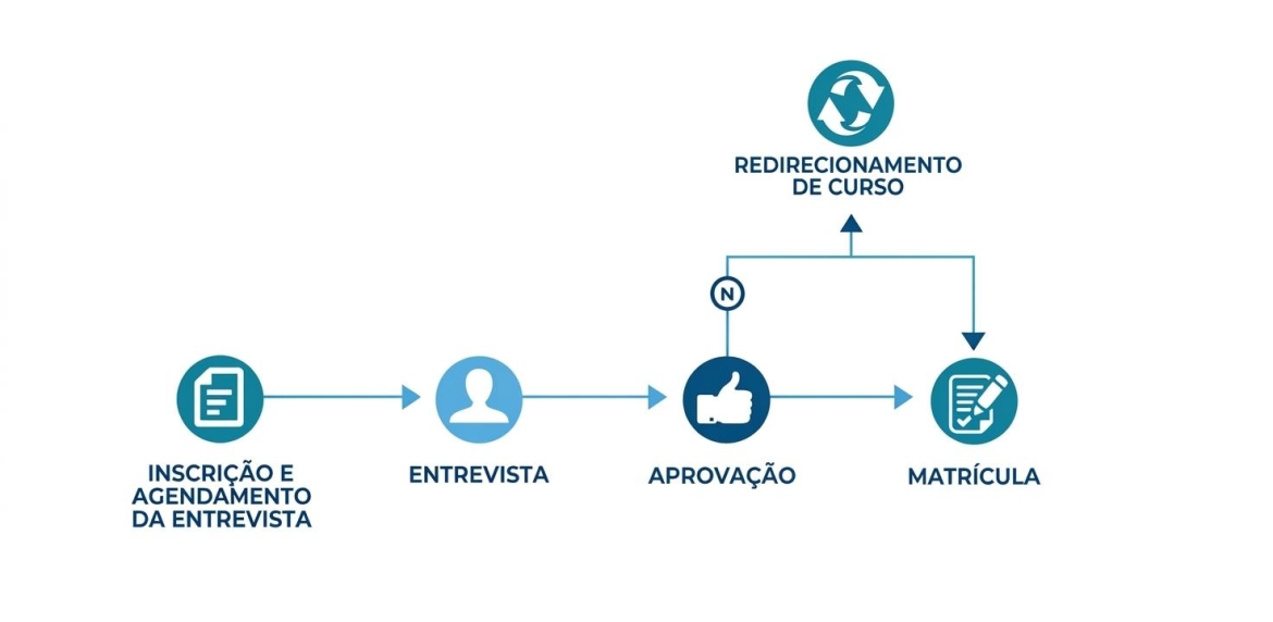 O processo seletivo é composto pela participação do candidato em uma Reunião de Orientação Acadêmica, conduzida com base nos critérios de seleção definidos pelos coordenadores acadêmicos de cada programa. Durante a reunião, será avaliado o programa mais adequado ao momento de carreira do candidato, bem como o atendimento aos pré-requisitos de ingresso. Caso o candidato não seja aprovado para o curso inicialmente escolhido, poderá ser orientado a ingressar em um programa mais alinhado ao seu perfil profissional e acadêmico.